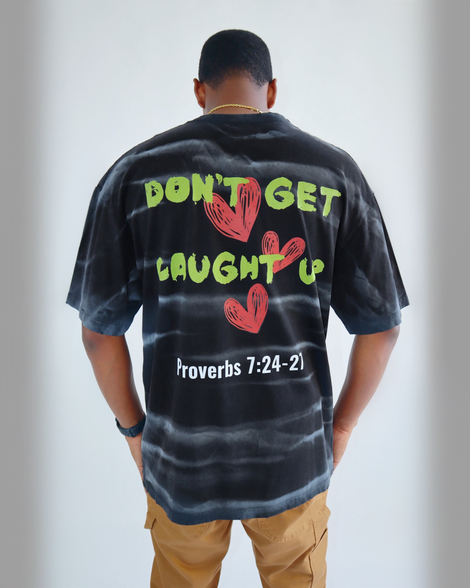 We've all been there, caught up in Jezebel's trap, but fear not for GOD will deliver us. This tee is casually crafted, durable, and free-flowing, fashioned with 250 GSM cotton. The irregular stripes and frayed borders add a distinctive, bold flair, perfect for standing out in any laid-back setting.